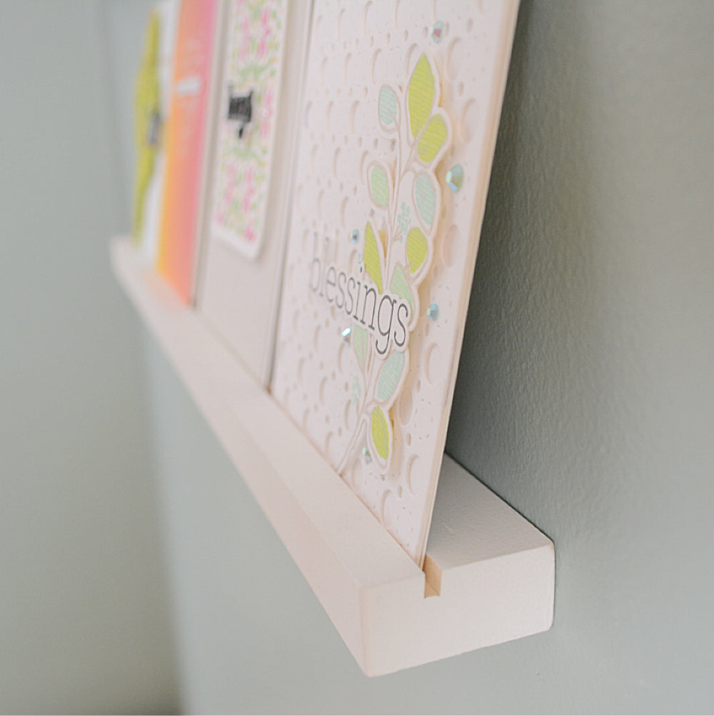 This 2-pack of Floating Card Shelves is a beautiful way to display your favorite cards! Plus, it's the perfect size, allowing 4 cards to stand vertically or 3 cards to stand horizontally on each shelf. The shelves will easily brighten any room!