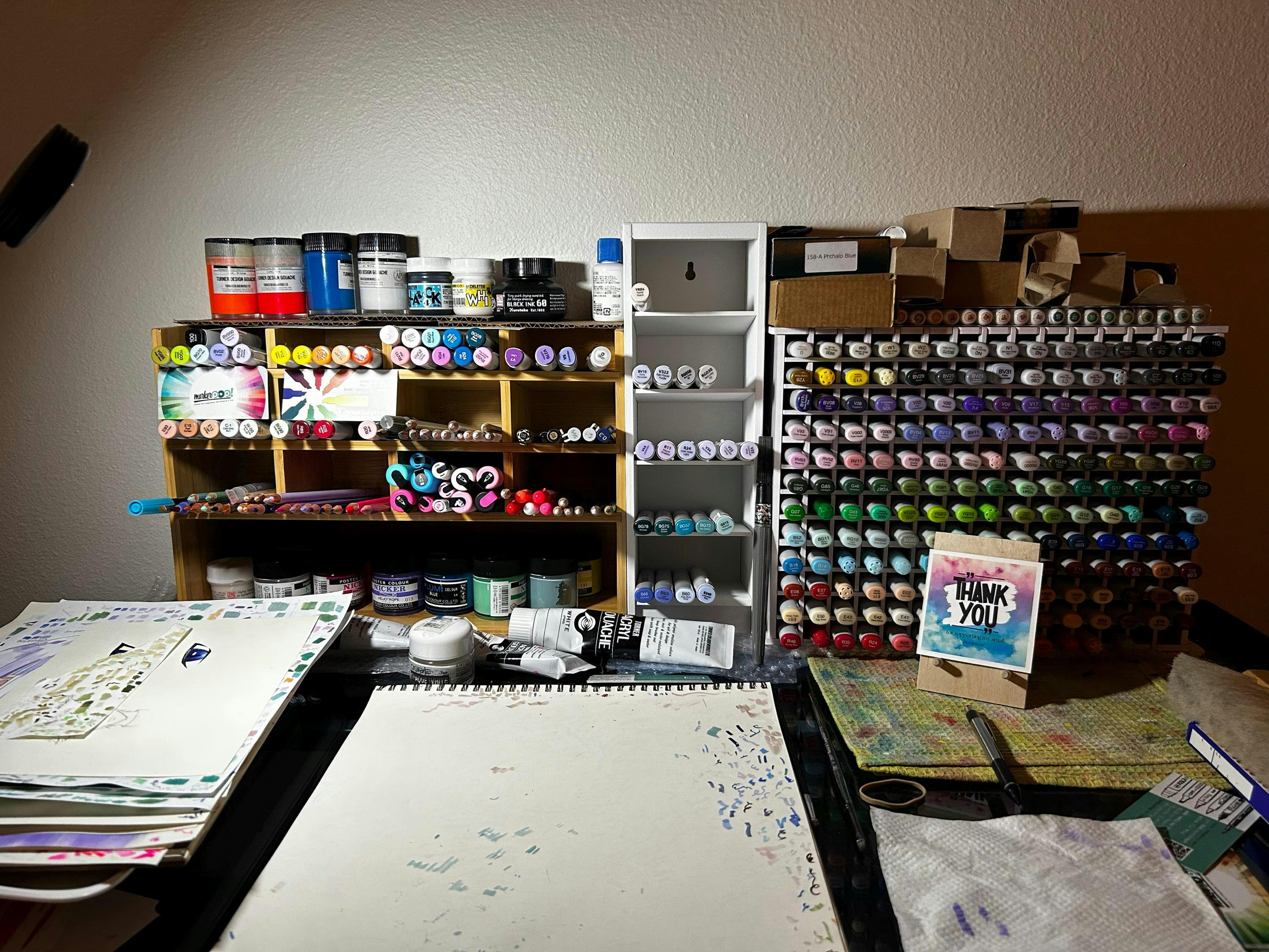 The best selling Standard Marker Organizer is the perfect way to store Copic and other brand markers! This organizer has slanted shelves, wood construction, and is only 13" tall. Plus, it fits easily into the Ikea Kallax shelving units! This unit will hold 120 Copic markers, 24 per cubby. It also works great with the Ohuhu Alcohol markers, holding 18 per cubby. No better way to control those craft markers than with our Standard Marker Organizer.